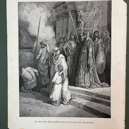 De moeder der zeven Machabeeuwsche breoders. Originele houtgravure van Gustave Doré uit 1875.