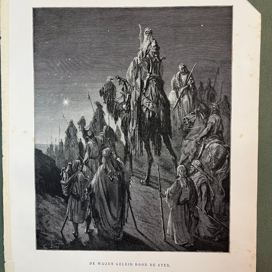 De wijzen geleid door de ster. Originele houtgravure van Gustave Doré uit 1875.