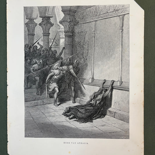 Dood van Athalia. Originele houtgravure van Gustave Doré uit 1875.