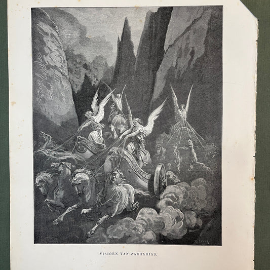 Visioen van Zacharias. Originele houtgravure van Gustave Doré uit 1875.