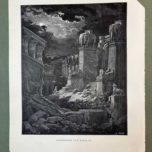 Puinhoopen van Babylon. Originele houtgravure van Gustave Doré uit 1875.