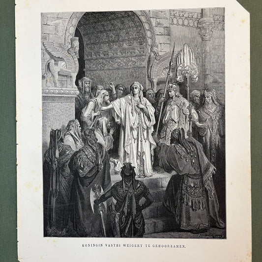 Koningin Vasthi weigert te gehoorzamen. Originele houtgravure van Gustave Doré uit 1875.