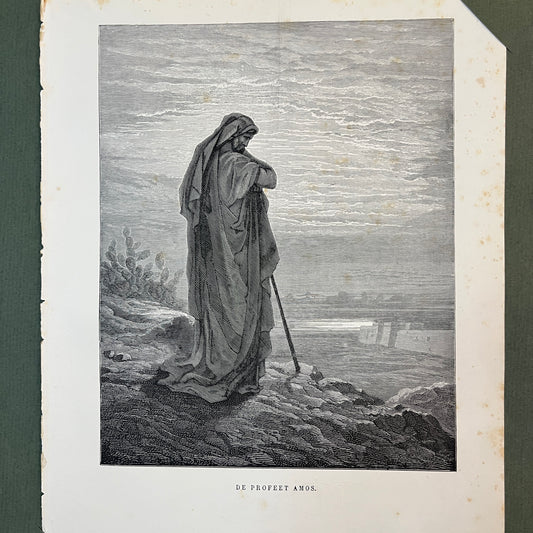 De profeet Amos. Originele houtgravure van Gustave Doré uit 1875.