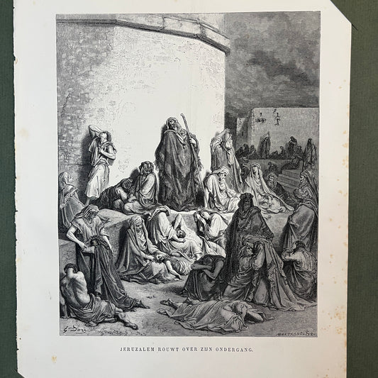 Jeruzalem rouwt over zijn ondergang. Originele houtgravure van Gustave Doré uit 1875.