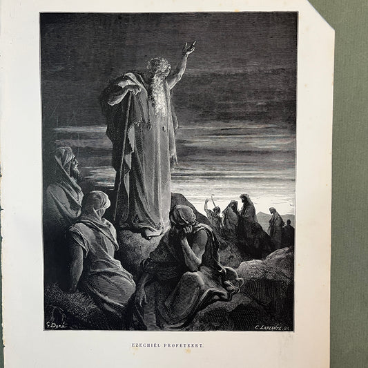 Ezechiël profeteert. Originele houtgravure van Gustave Doré uit 1875.