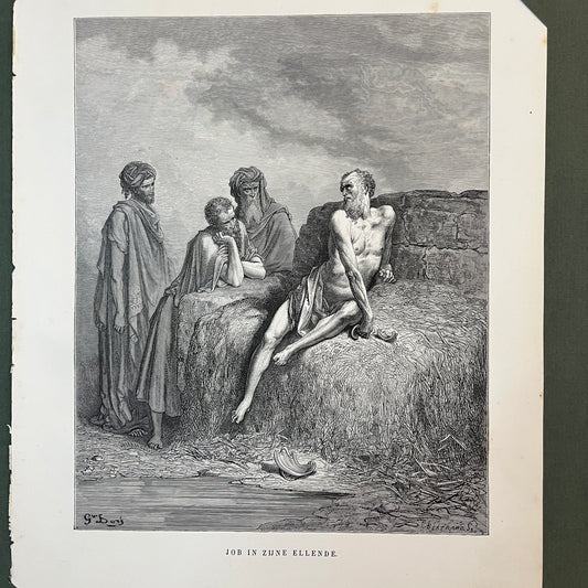 Job in zijne ellende. Originele houtgravure van Gustave Doré uit 1875.