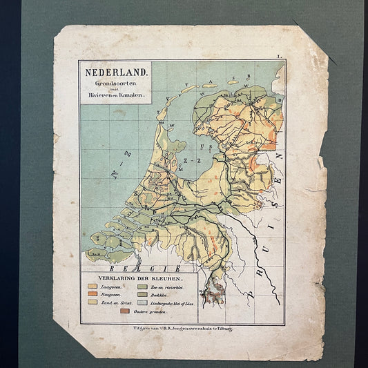 Antieke kaart Nederland. Grondsoorten met Rivieren en Kanalen uit 1923