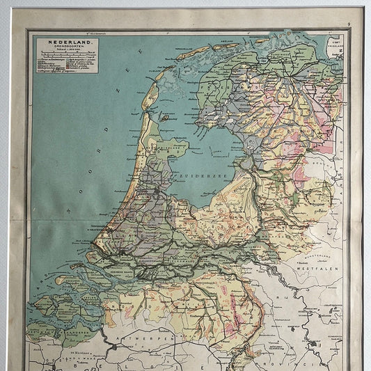Antieke kaart Nederland. Grondsoorten met Rivieren en Kanalen uit 1923
