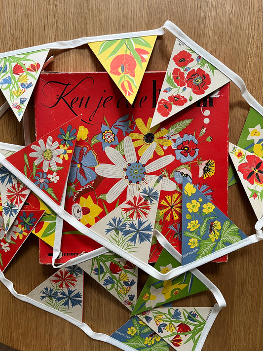 Vlaggetjeslijn van vintage jaren ‘30 bordspel ‘Ken je die bloem’ (3 meter)