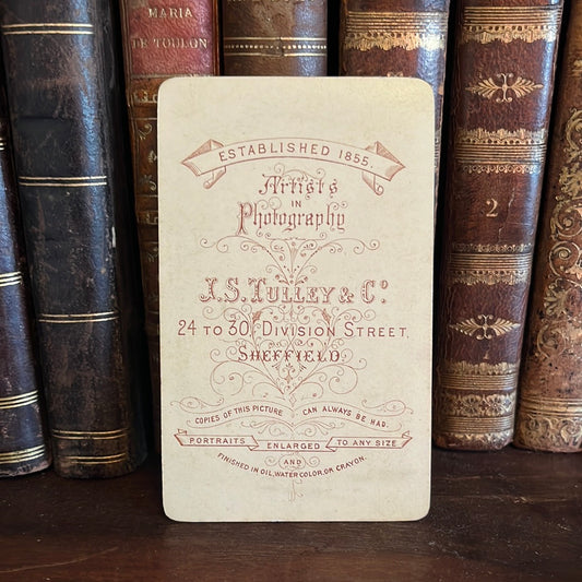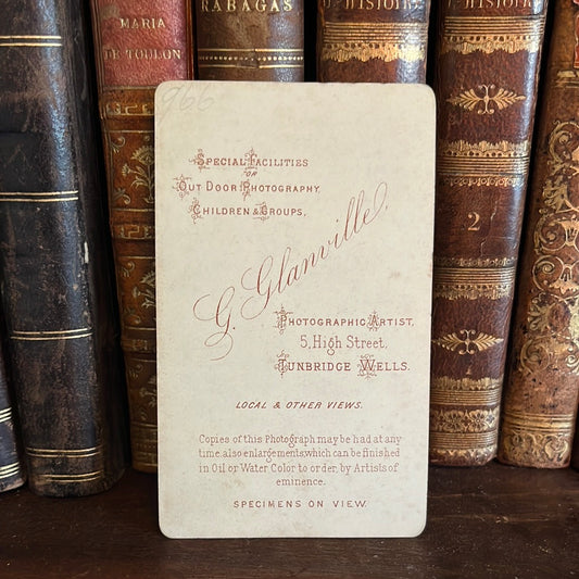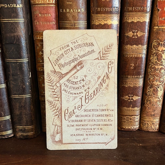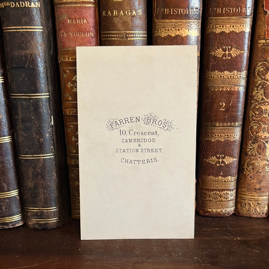 Diese wunderschönen Fotokarten stammen aus der Zeit zwischen 1850 und 1914. Zu dieser Zeit wurden diese Pappvisitenkarten häufig mit (Familien-)Porträts versehen. Auch die Rückseite sah mit viktorianischen Texten und dem Logo des Fotografen oft wunderschön aus. Diese Carte de Visite oder Kabinettkarten wurden oft an Freunde, Verwandte und Verwandte verschenkt. Es wurden auch Fotos der königlichen Familie gesammelt. Da die Jahreszahl auf ihnen fast nie angegeben war, ist es schwierig herauszufinden, aus welchem Jahr sie stammen, aber es dürfte um das Jahr 1900 liegen.