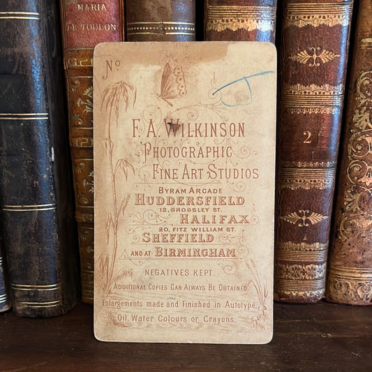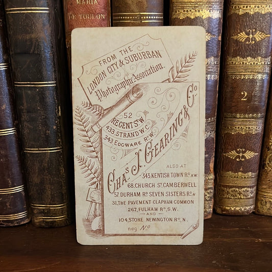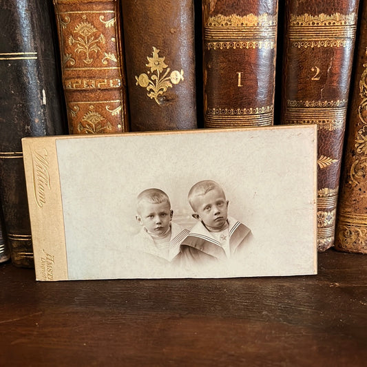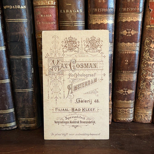Diese wunderschönen Fotokarten stammen aus der Zeit zwischen 1850 und 1914. Zu dieser Zeit wurden diese Pappvisitenkarten häufig mit (Familien-)Porträts versehen. Auch die Rückseite sah mit viktorianischen Texten und dem Logo des Fotografen oft wunderschön aus. Diese Carte de Visite oder Kabinettkarten wurden oft an Freunde, Verwandte und Verwandte verschenkt. Es wurden auch Fotos der königlichen Familie gesammelt. Da die Jahreszahl auf ihnen fast nie angegeben war, ist es schwierig herauszufinden, aus welchem Jahr sie stammen, aber es dürfte um das Jahr 1900 liegen.