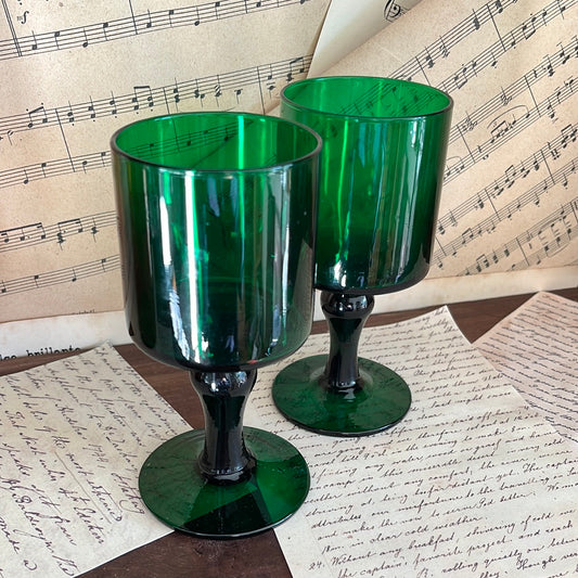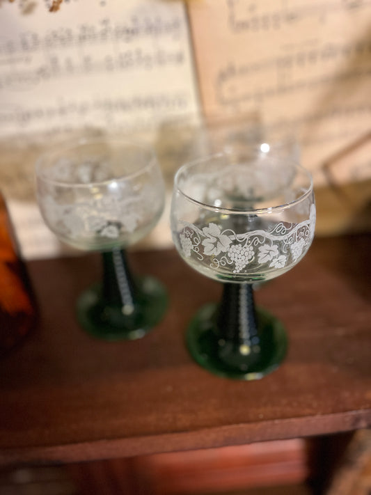 Set aus grünen Weingläsern im Retro-Stil