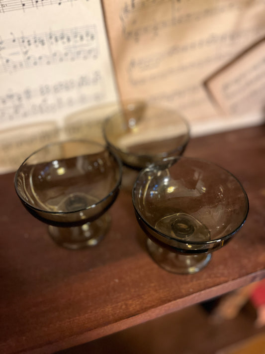 Set aus Vintage-Eisbechern aus Rauchglas
