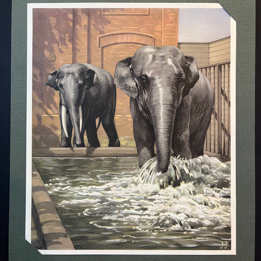 Indische Elefanten. Aus dem Verkade-Album „Affen und Huftiere in Artis“ von 1938.