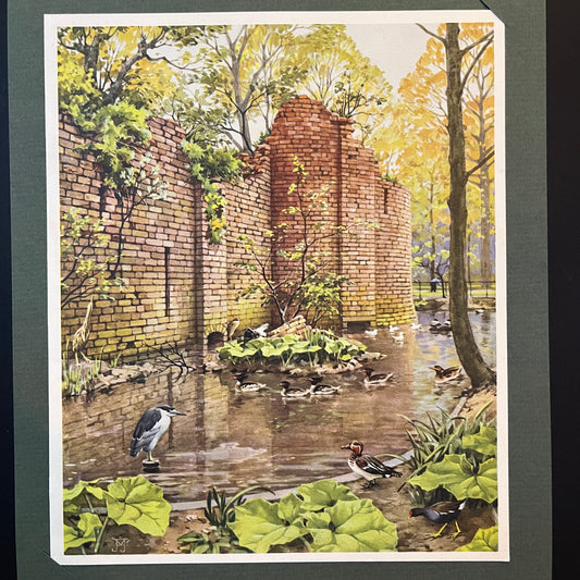 Tafel J. Am Burggraben der Eulenruine. Aus dem Verkade-Album „Animal life in Artis“ von 1938.