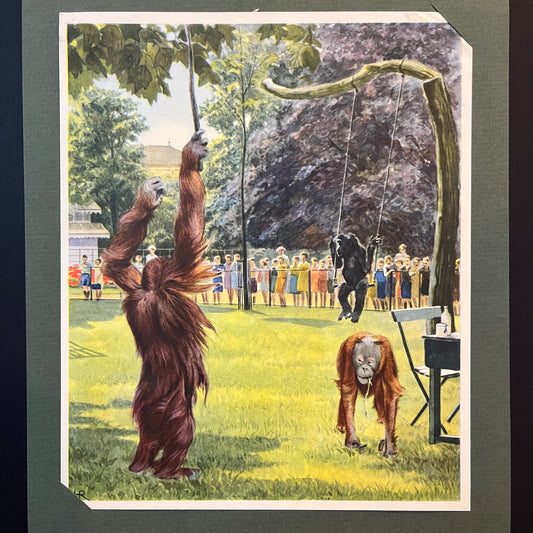 Tafel B. Auf dem Affenspielfeld. Aus dem Verkade-Album „Animal life in Artis“ von 1938.