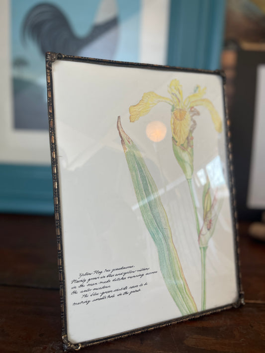 Antiker Rahmen mit Aufdruck einer gelben Iris