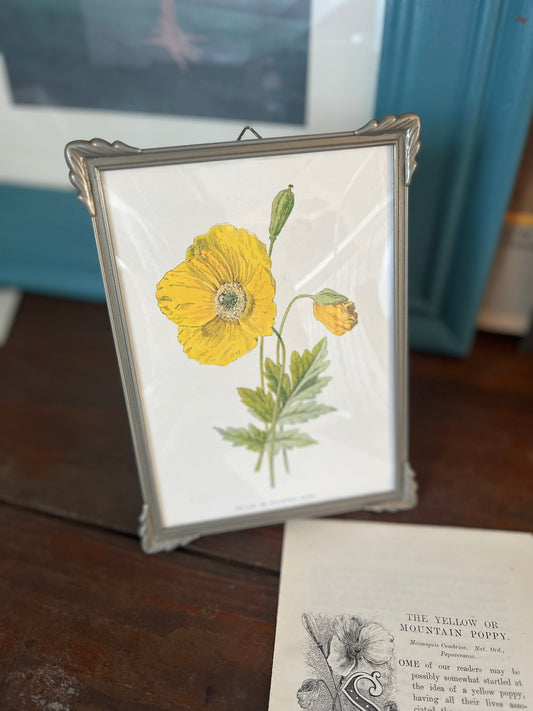 Antiker Art-Deco-Rahmen mit Aufdruck einer gelben Mohnblume aus dem Jahr 1910