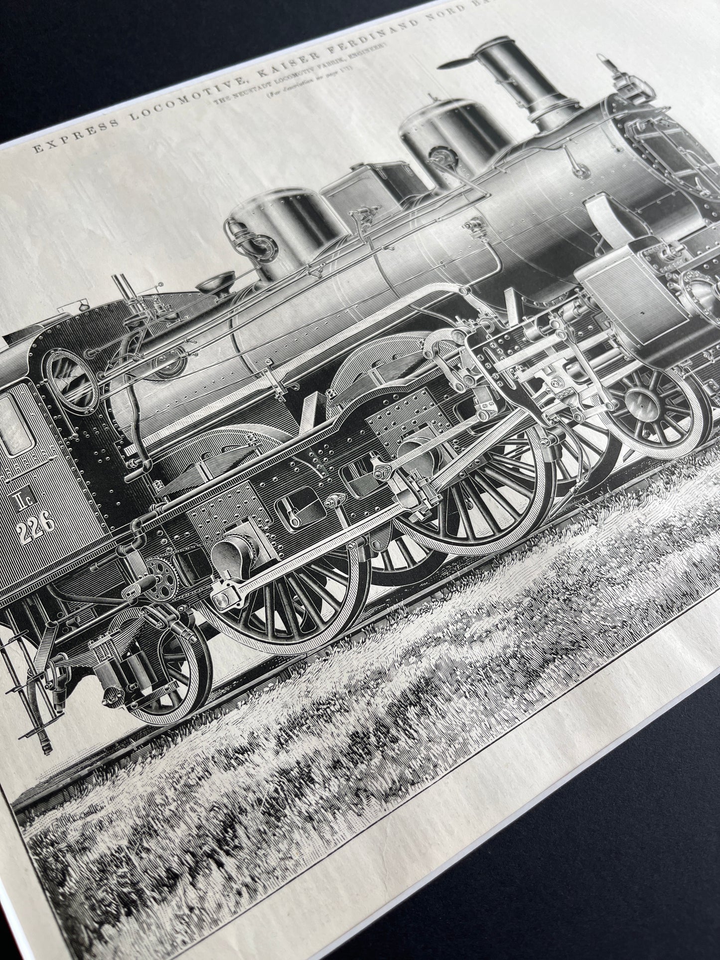 Dieser Druck stammt aus der britischen Zeitschrift „The Engineer“ aus dem Jahr 1897. Der Druck misst 28x40 cm.