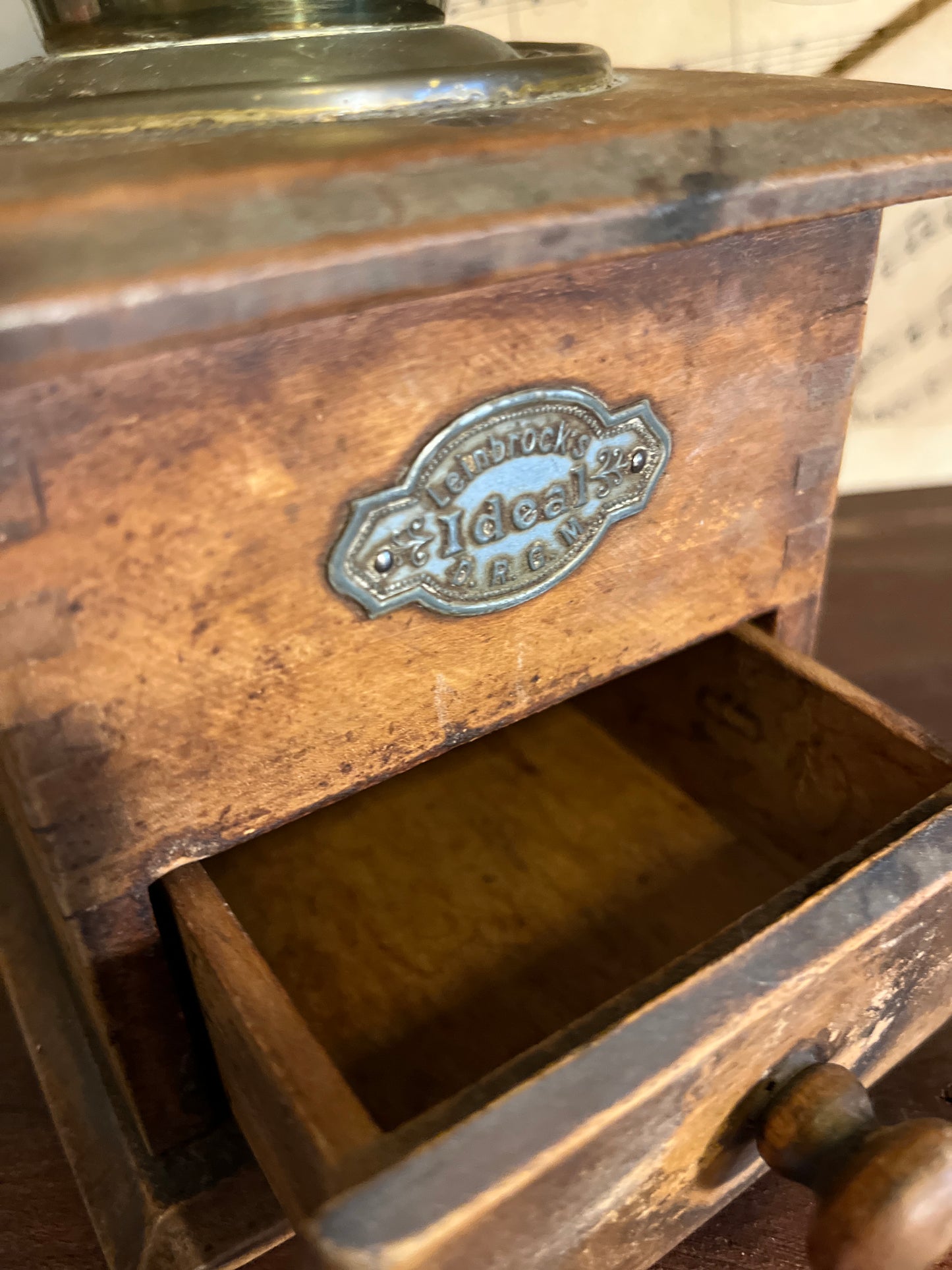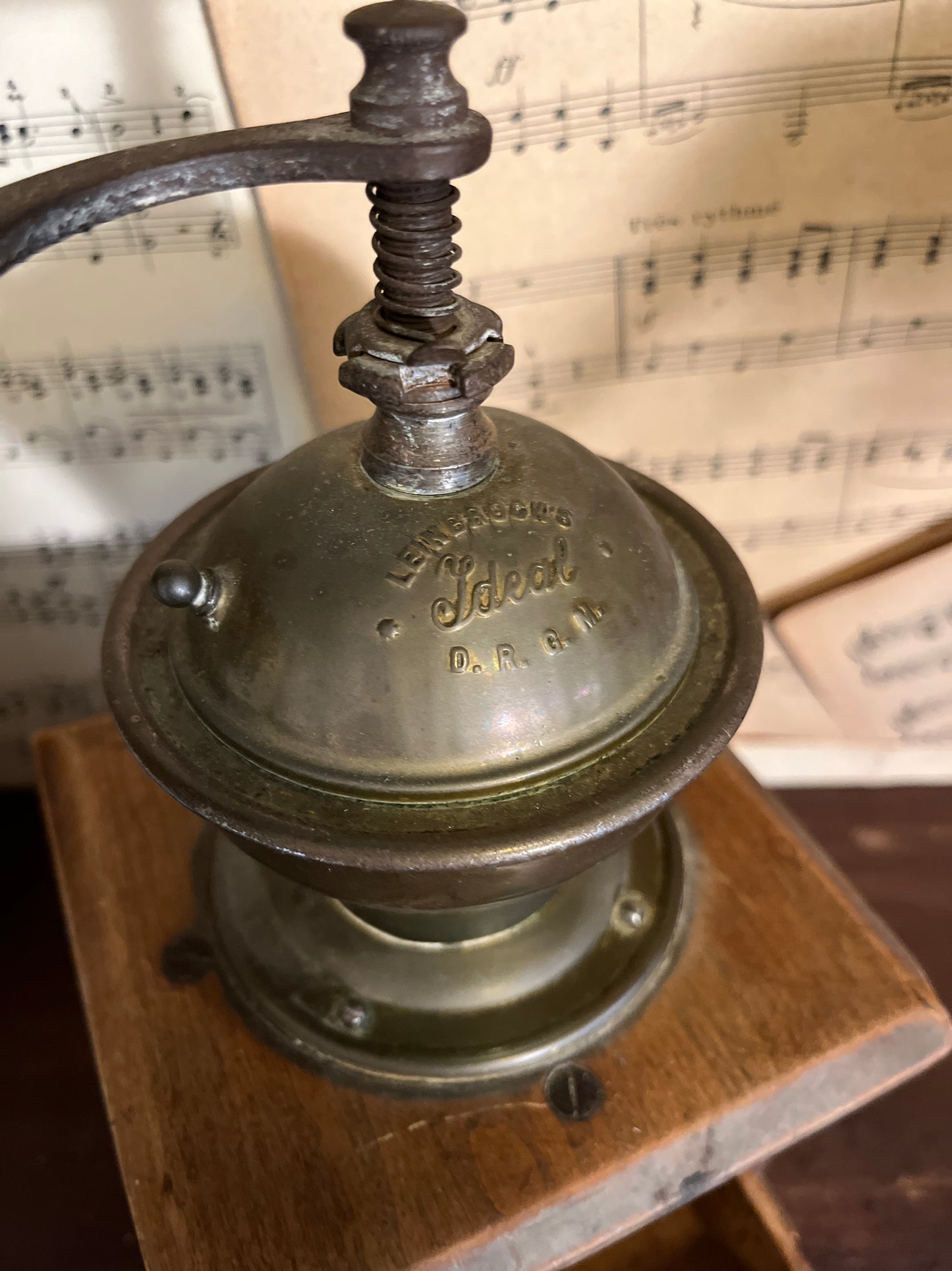Wunderschöne Vintage-Kaffeebohnenmühle der Marke Leinbrock's Ideal.