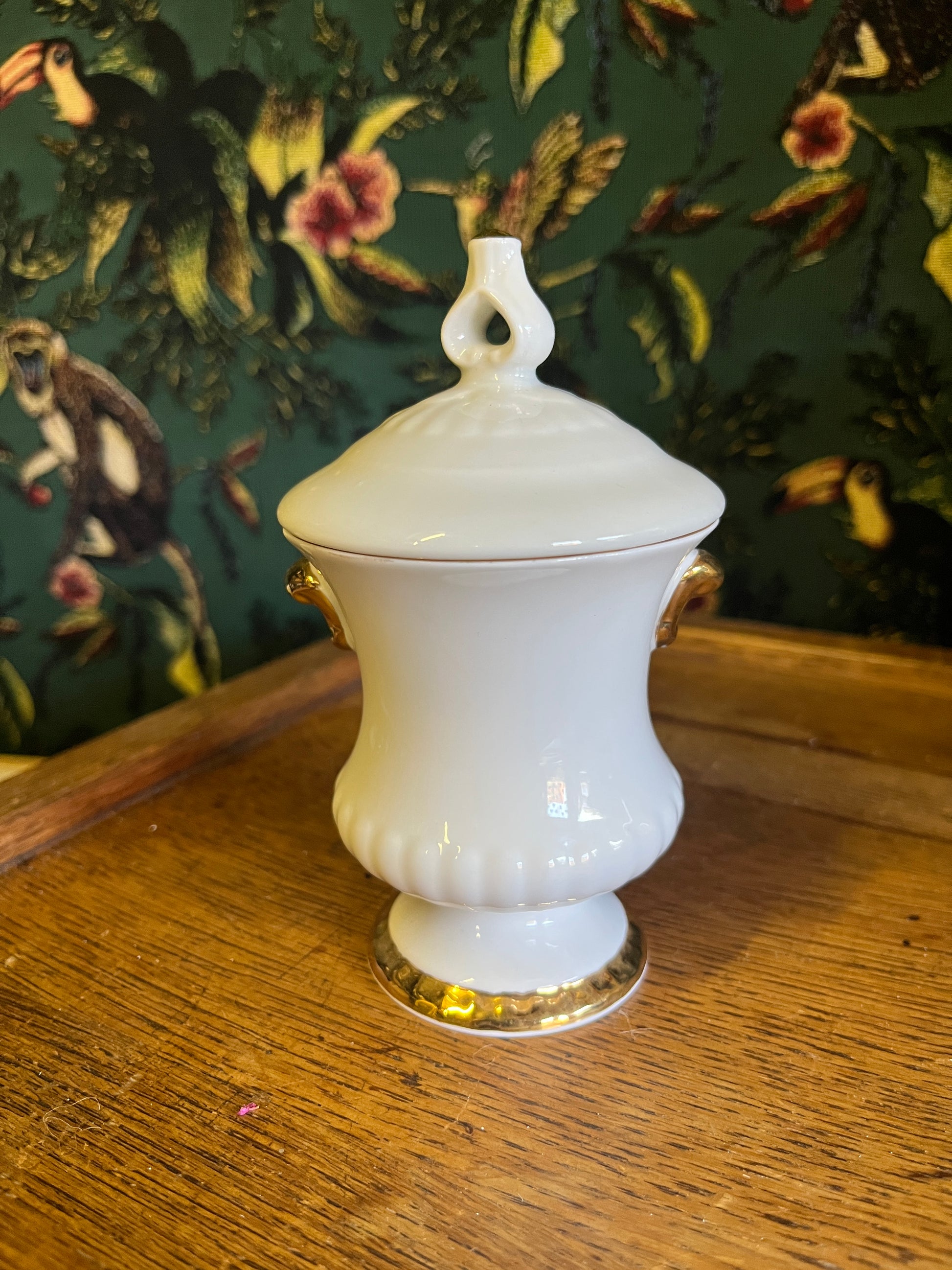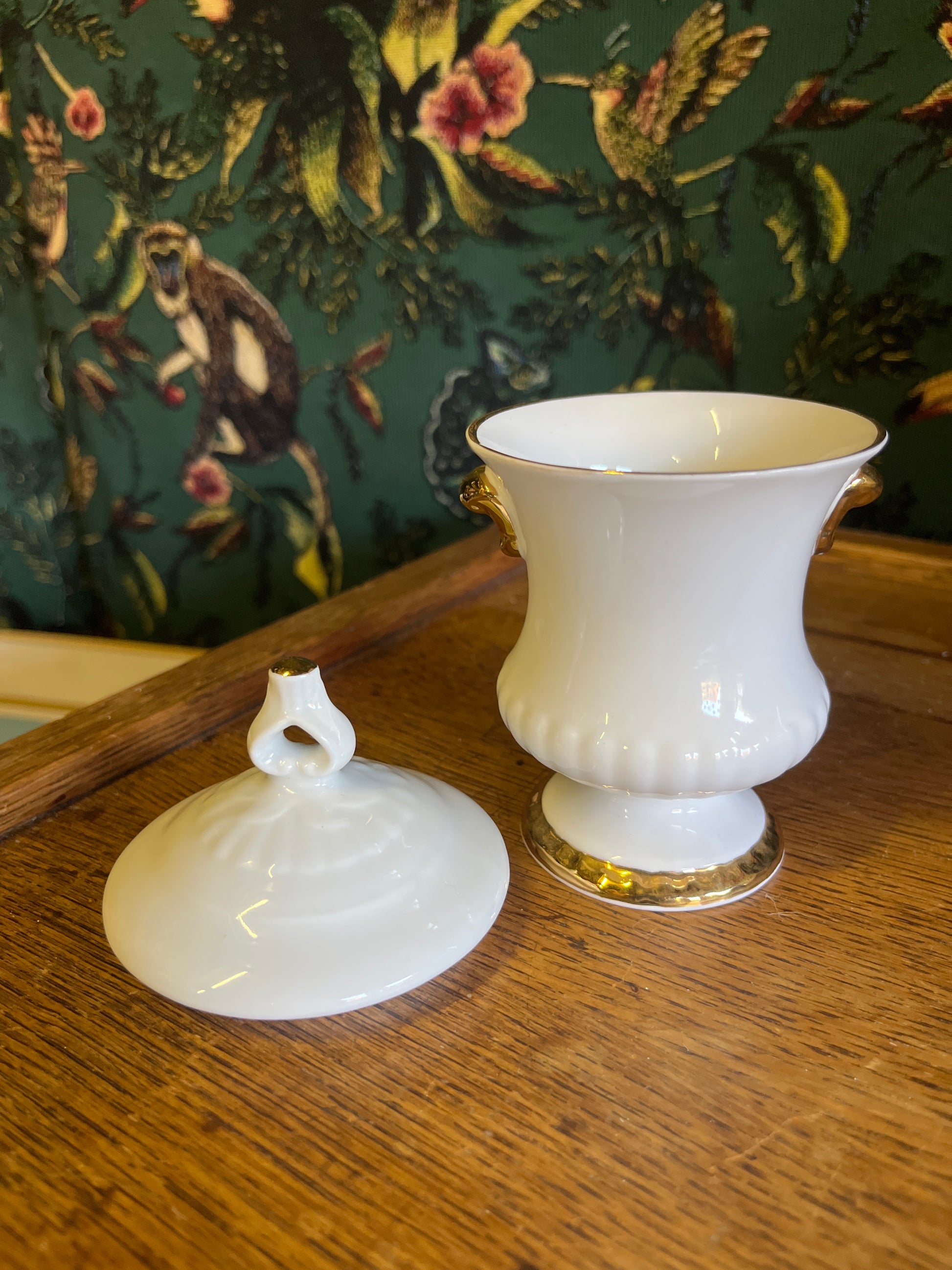 Löffelvase mit Deckel der britischen Marke Royal Albert aus der Val D'Or-Serie.
