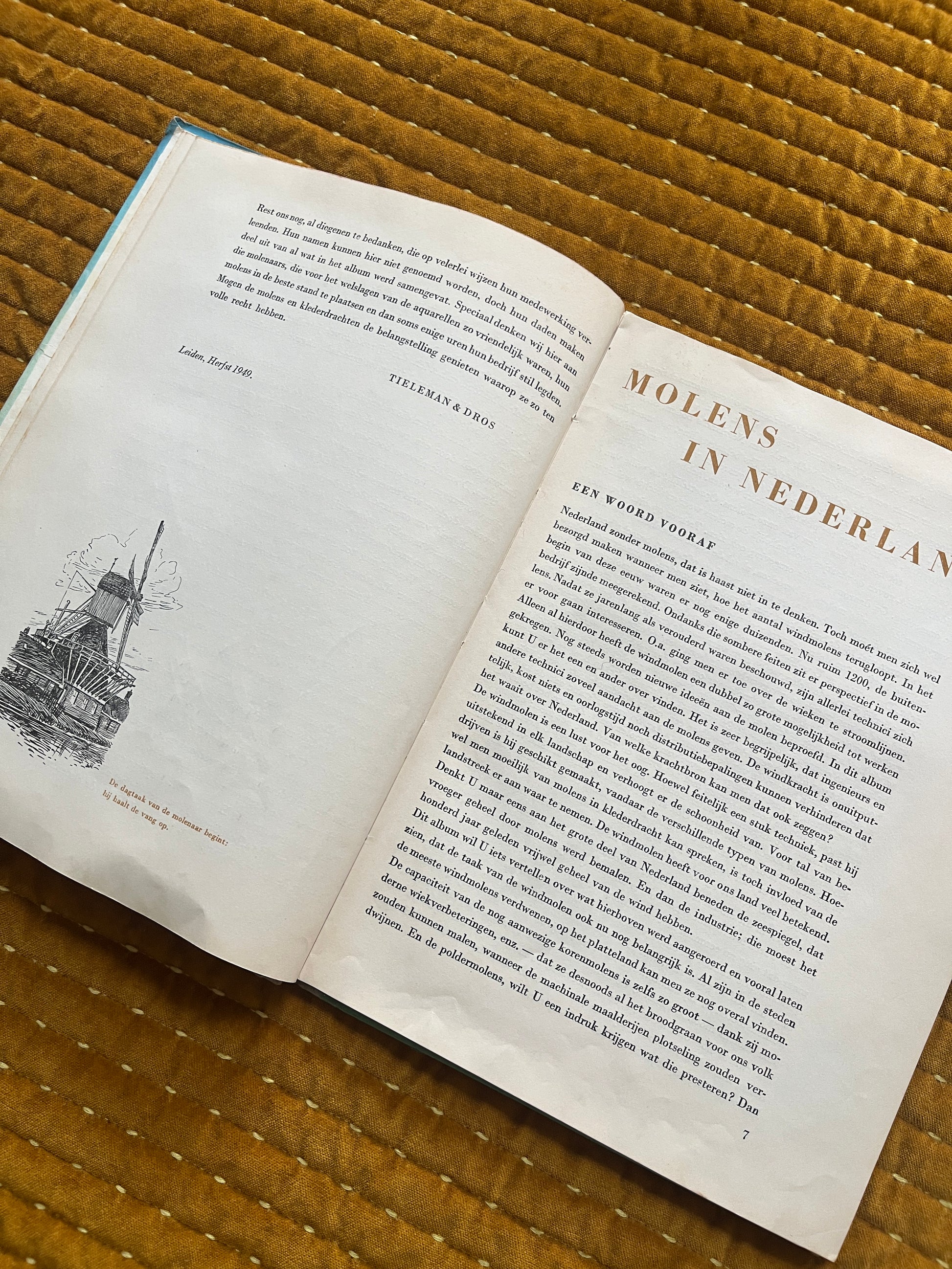 Das 1949 erschienene Kompilationsalbum „Windmühlen und Trachten in den Niederlanden“ ist ein aufwendig gestaltetes kulturhistorisches Bildband, das ein Bild der Niederlande in der Nachkriegszeit zeichnet. Es wurde vermutlich von einem Lebensmittelhersteller oder Margarineproduzenten herausgegeben, zu einer Zeit, als Briefmarkensammlungen und Sammelalben äußerst beliebt waren.