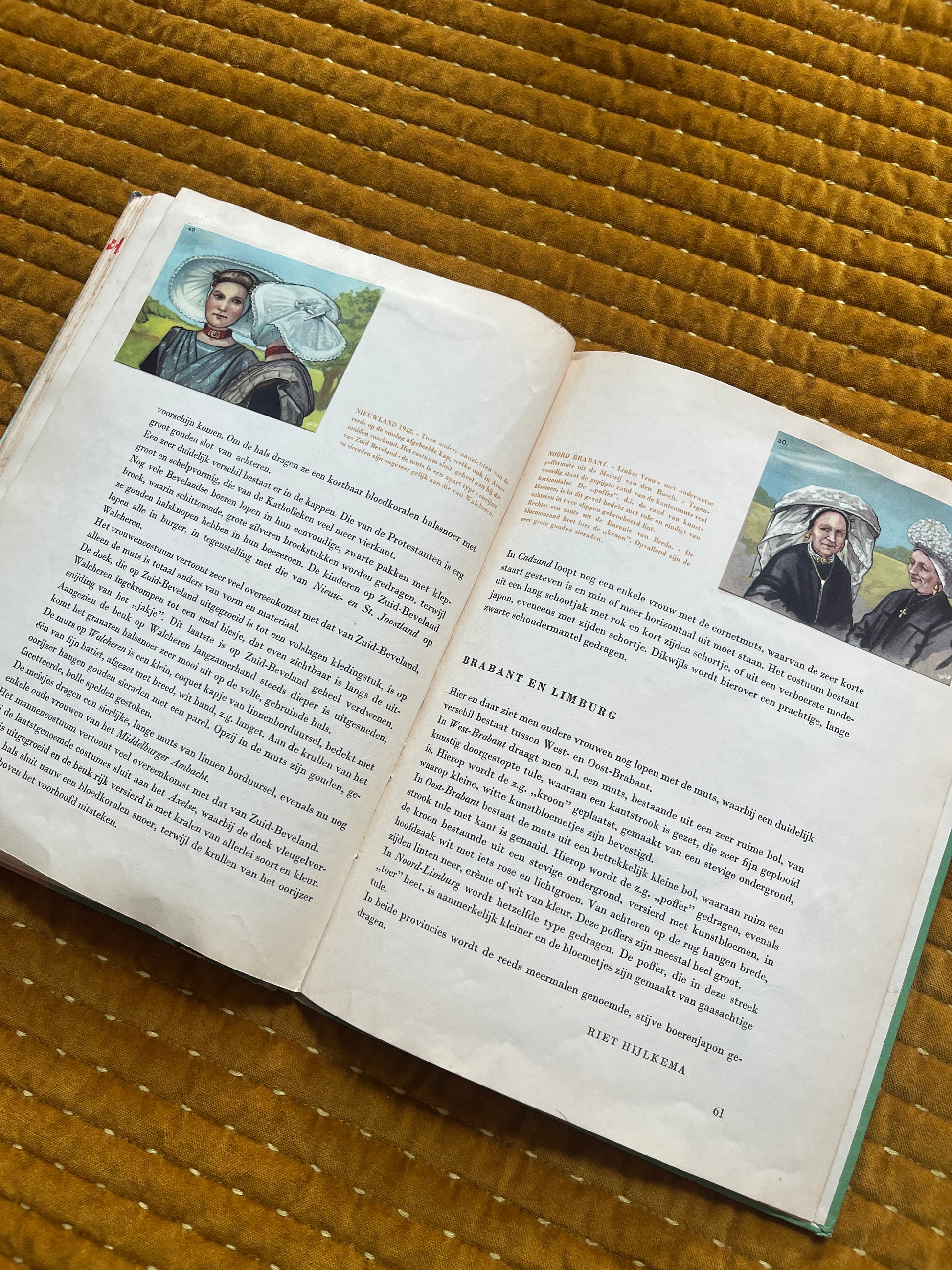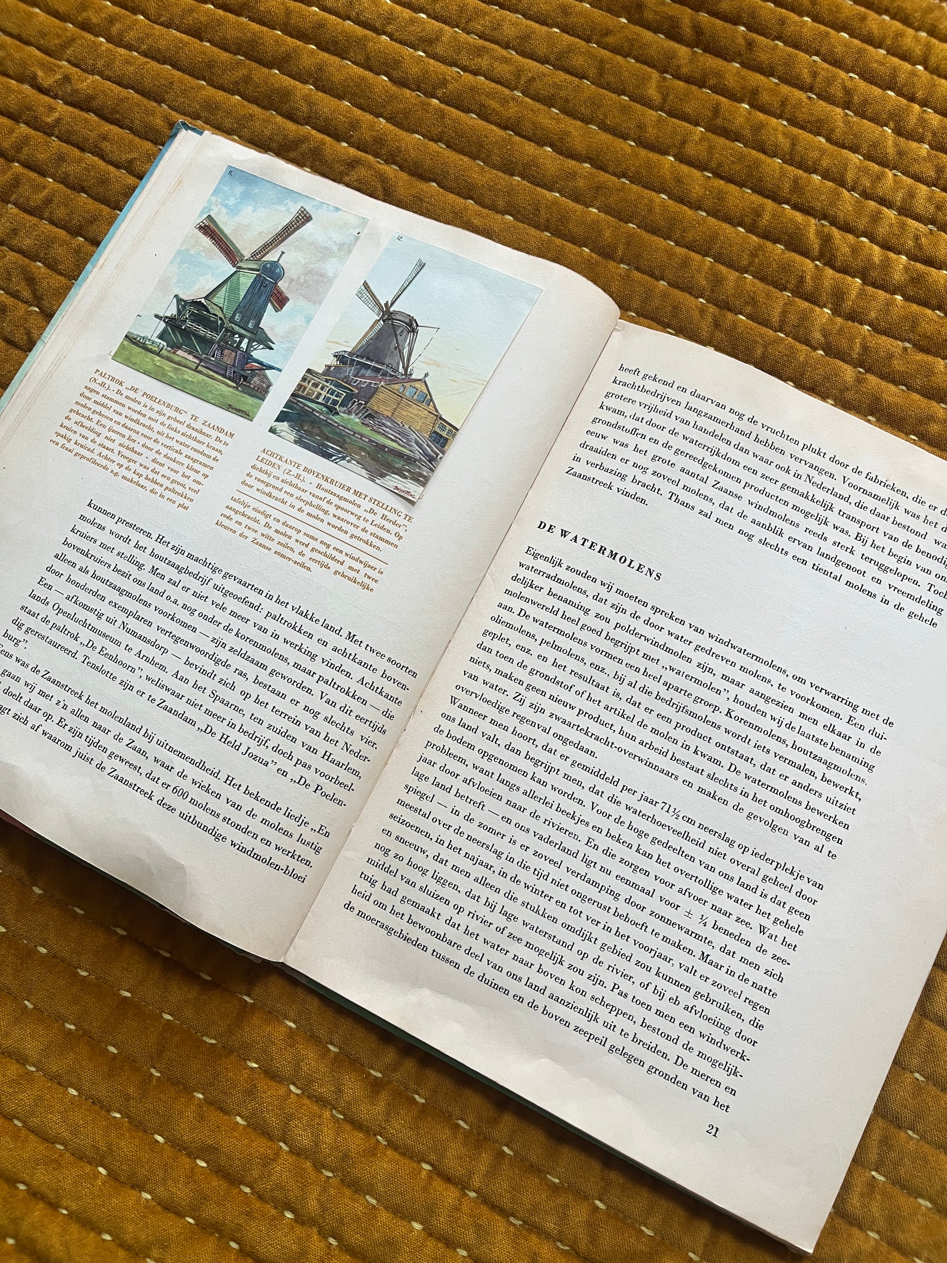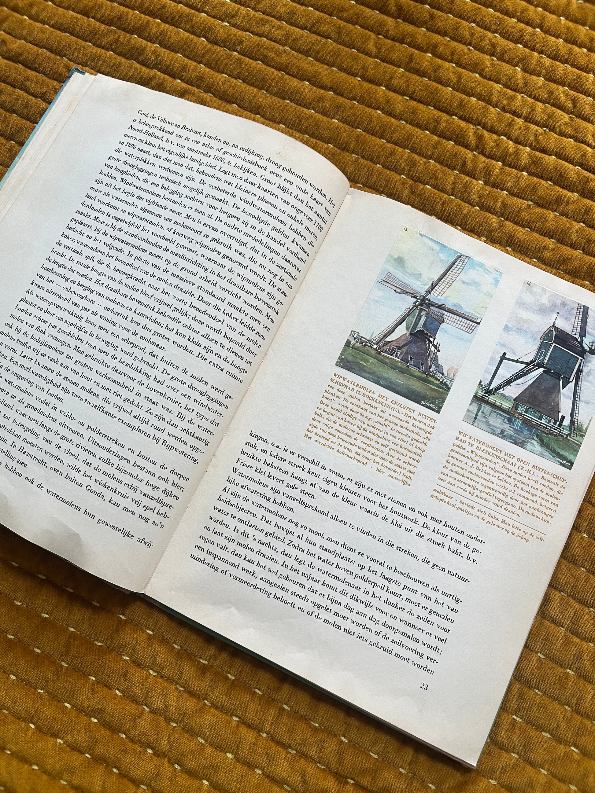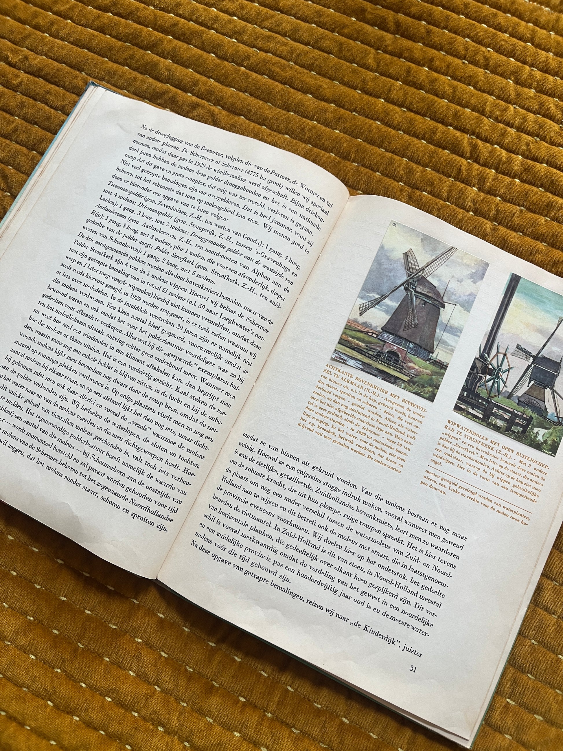 Die Seiten sind reich illustriert mit farbenfrohen Fotoalben, oft im Lithografieverfahren gedruckt, die die Atmosphäre der niederländischen Landschaft wunderbar einfangen. Das Album ist vollständig und in gutem Zustand.