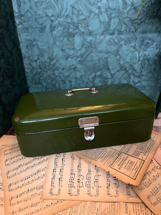 Below you can see the collection of vintage enamel bread boxes from the 1920s to the 1960s. The stock continues to expand, so keep an eye on the collection. Are you looking for a special color? Let me know and I will help you find it.