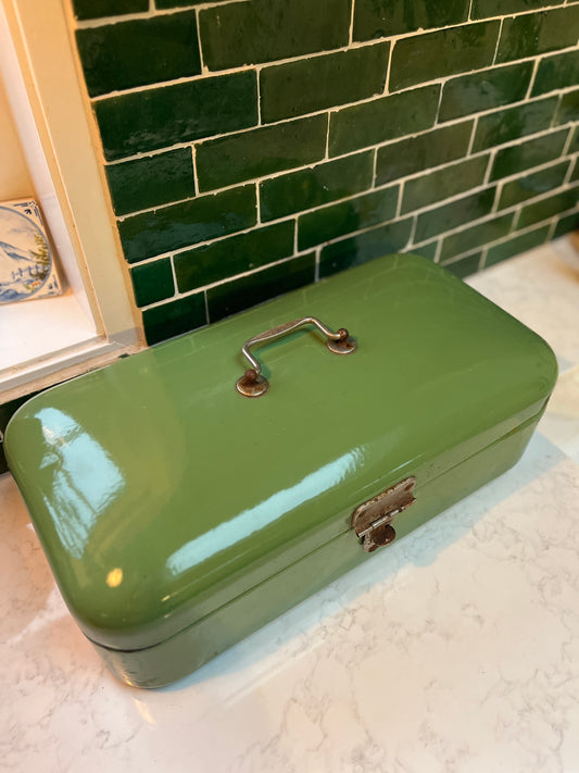 You can buy new modern enamel bread boxes but having a vintage enamel bread box in your kitchen is just that touch of 'wow!'