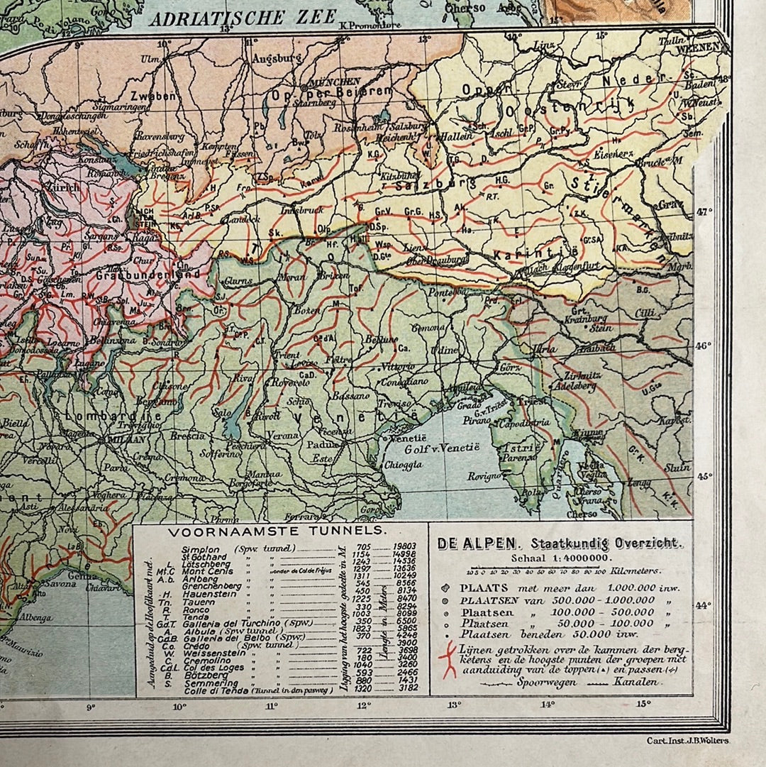 This beautiful old map comes from an altas from 1923. The dimensions of the map are 38x46.5 cm. The card may contain age features such as discolorations.