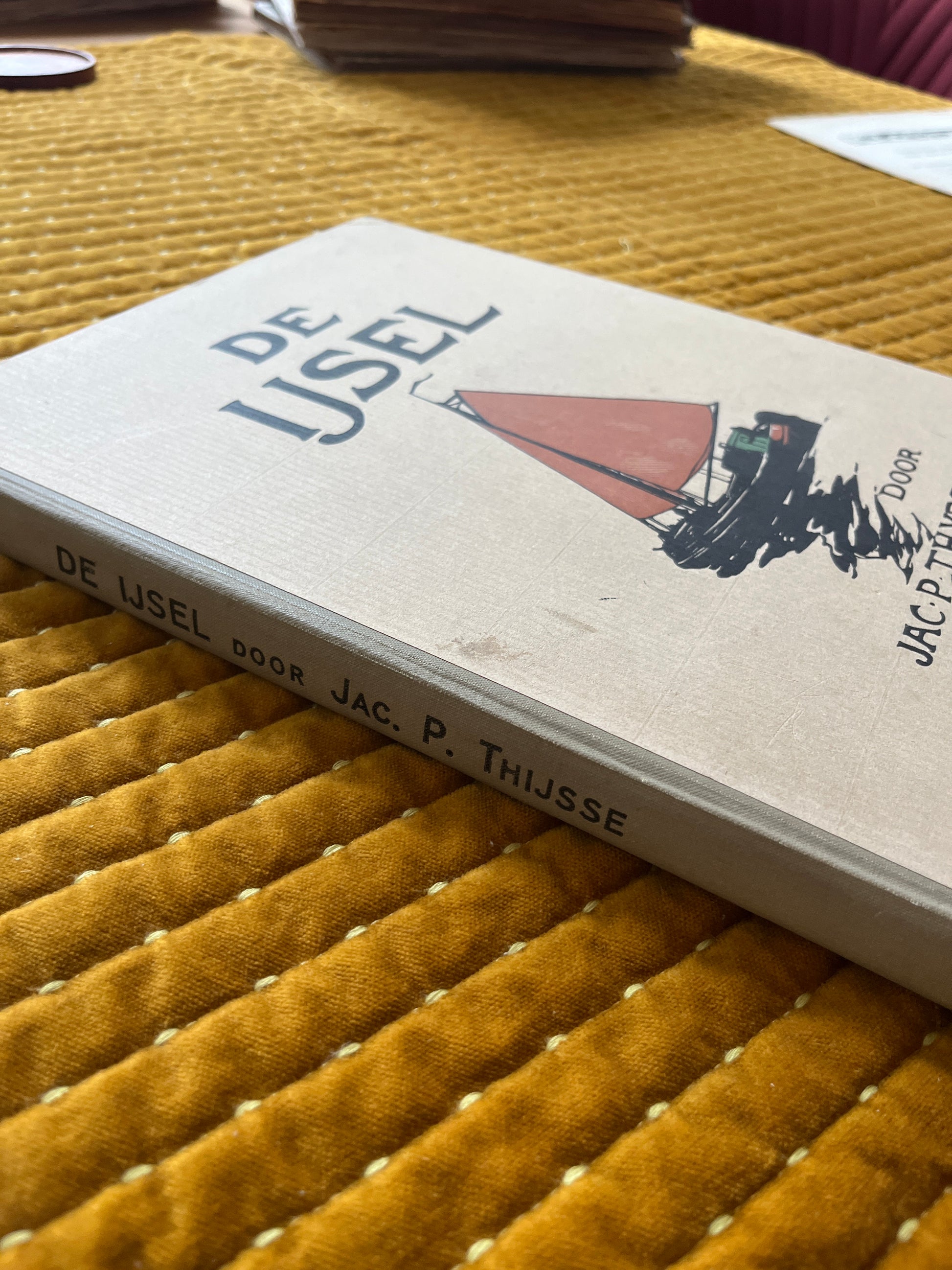 This original Verkade picture album, "De IJssel" from 1916, is a beautifully illustrated collector's album, published by the renowned Dutch biscuit and chocolate manufacturer Verkade. This album is part of the renowned Verkade album series, which the company used in the early 20th century to encourage customers to collect and paste in savings cards.