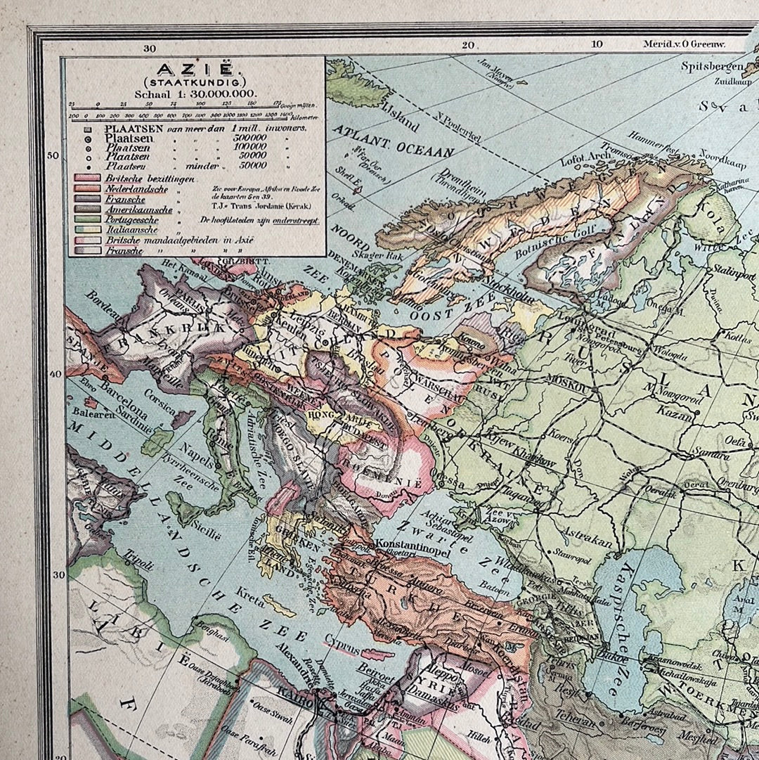 Deze schitterende oude kaart komt uit een altas uit 1932. De afmeting van de kaart is 38x46,5 cm. De kaart kan ouderdomseigenschappen bevatten zoals verkleuringen.