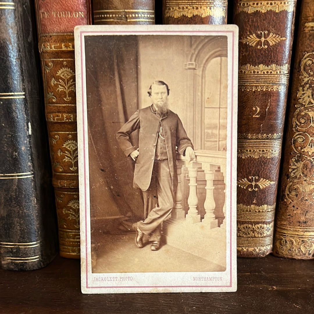 Prachtige antieke carte de visite uit de periode 1850-1914. Deze fotokaarten op karton waren heel geliefd halverwege de 19e eeuw tot aan de Eerste Wereldoorlog. De kartonnen kaarten zijn meestal 6,5x10 cm met op de voorkant de albuminen foto en de naam naam van de fotograaf en op de achterkant het logo van de fotograaf. Naar mate de jaren werden deze logo's met prachtige Victoriaanse tekens versierd en werden het een soort reclames. Deze carte de visite werden gegeven aan vrienden en familie en vaak verzameld in albums of neergezet in de boekenkast. Ook werden foto's van de koninklijke familie verzameld. Tegenwoordig zijn ze enorm geliefd vanwege de vintage uitstraling en de prachtige Victoriaanse achterkant. Omdat er bijna nooit een jaartal op werd gezet is het moeilijk te achterhalen uit welk jaartal de carte de visite komt.