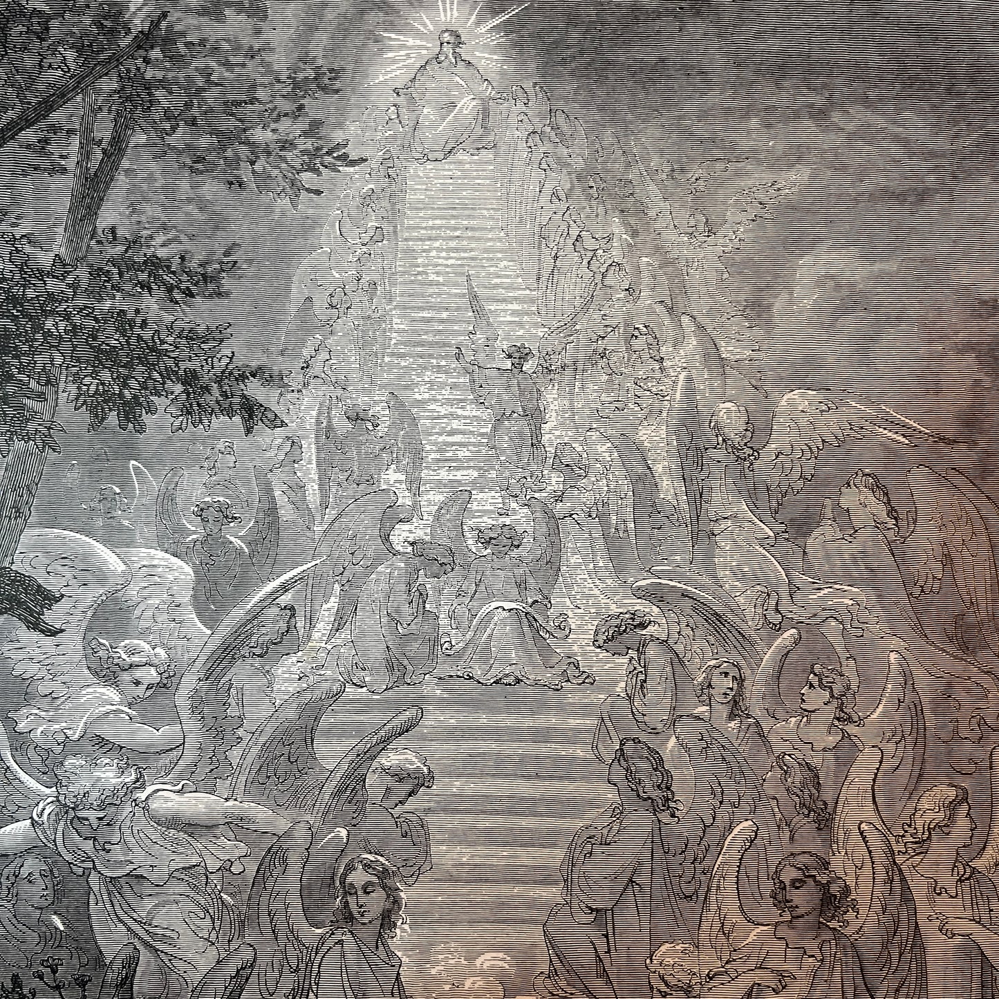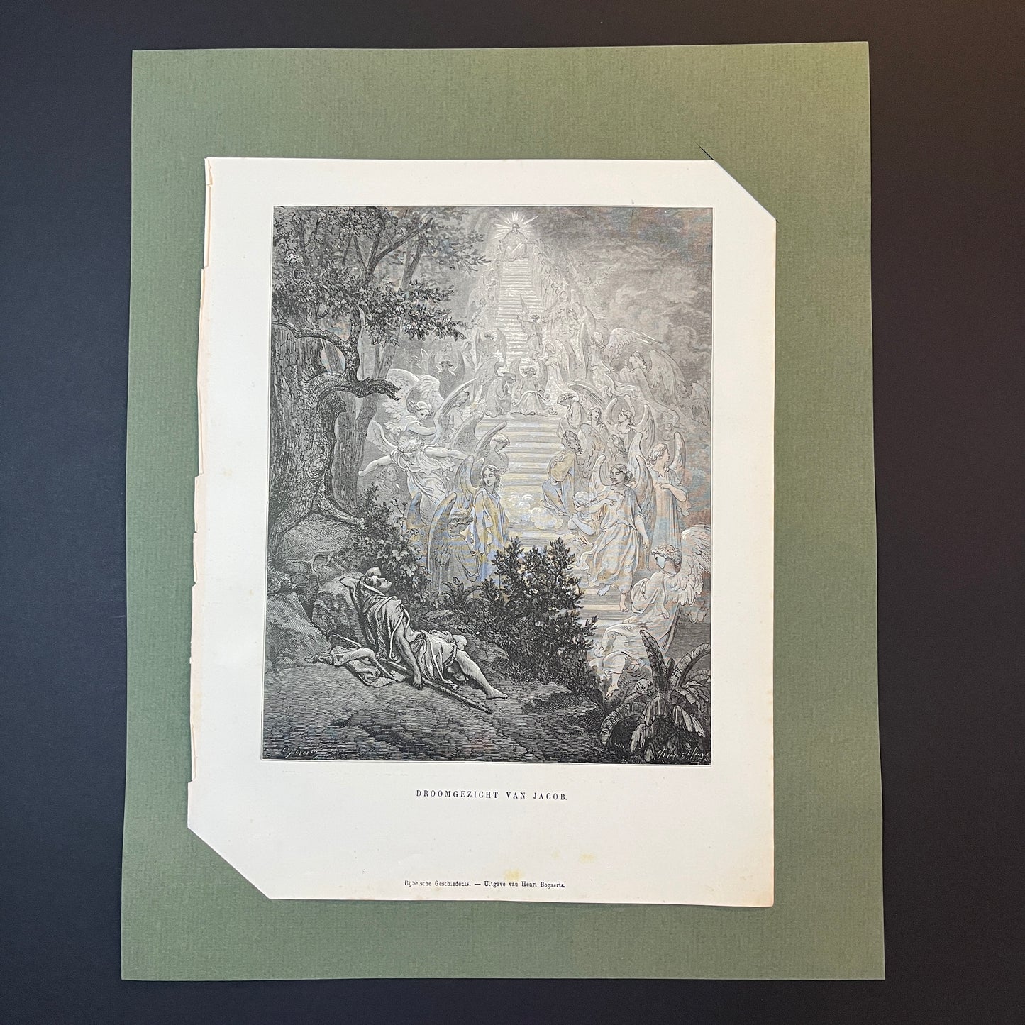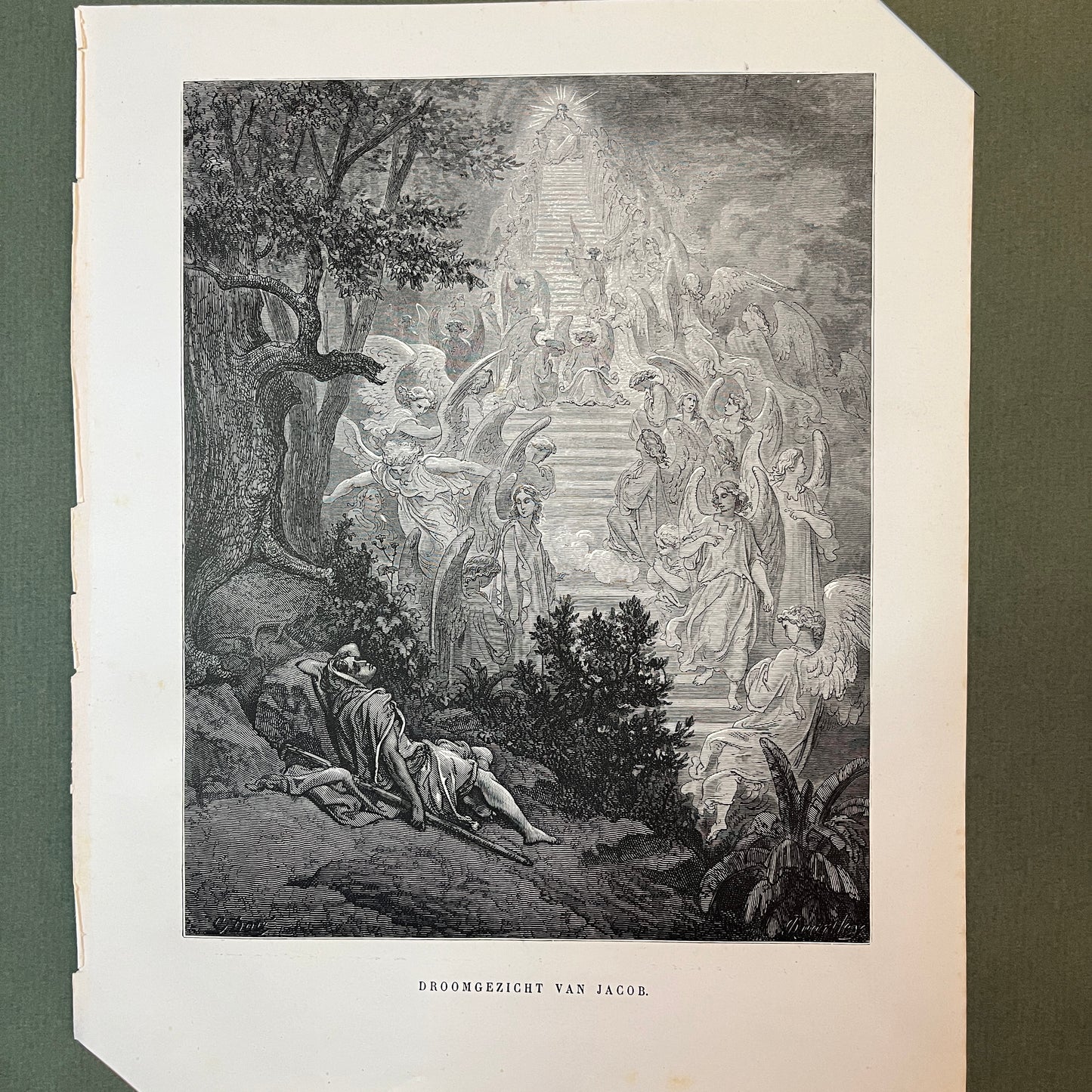 Droomgezicht van Jacob. Originele houtgravure van Gustave Doré uit 1875.