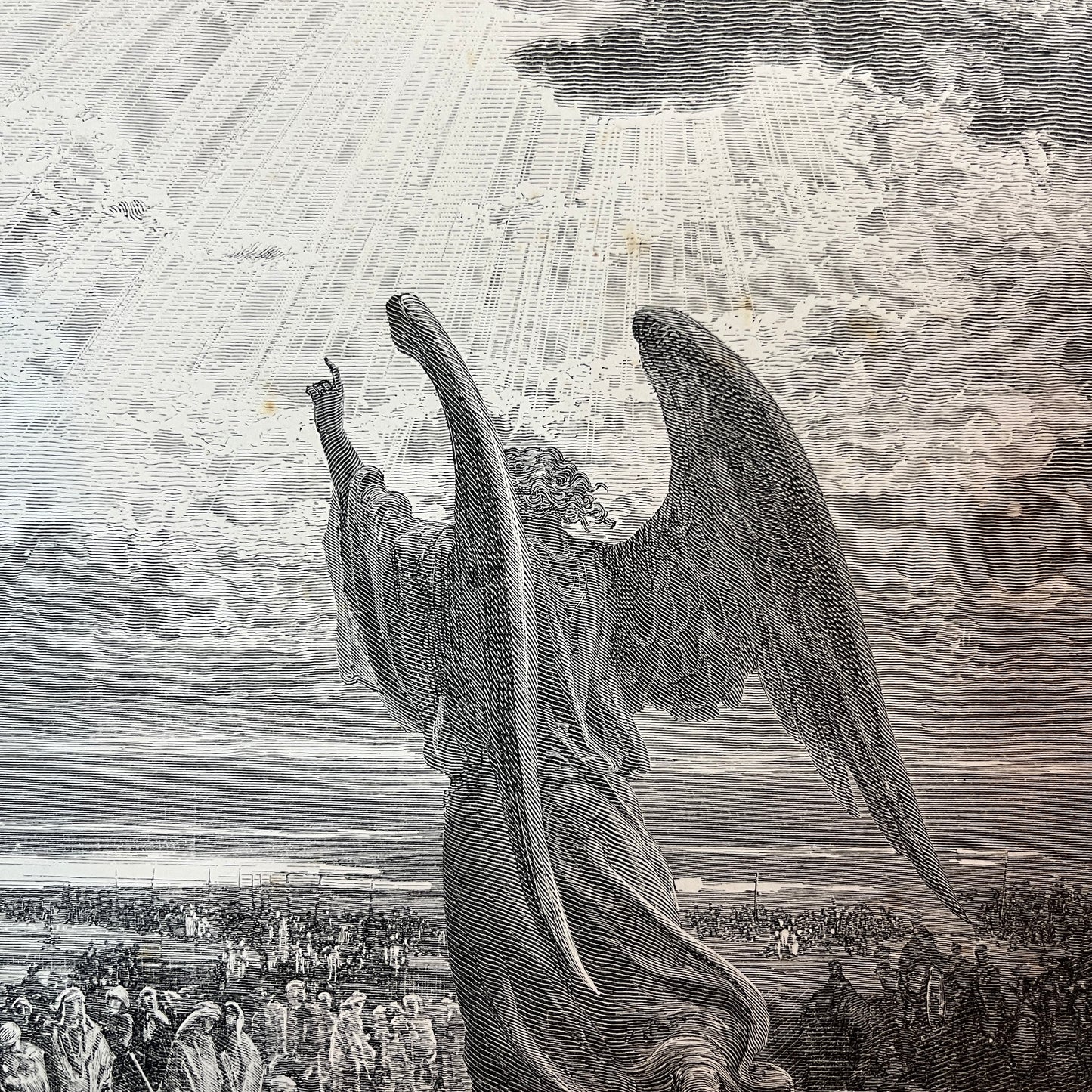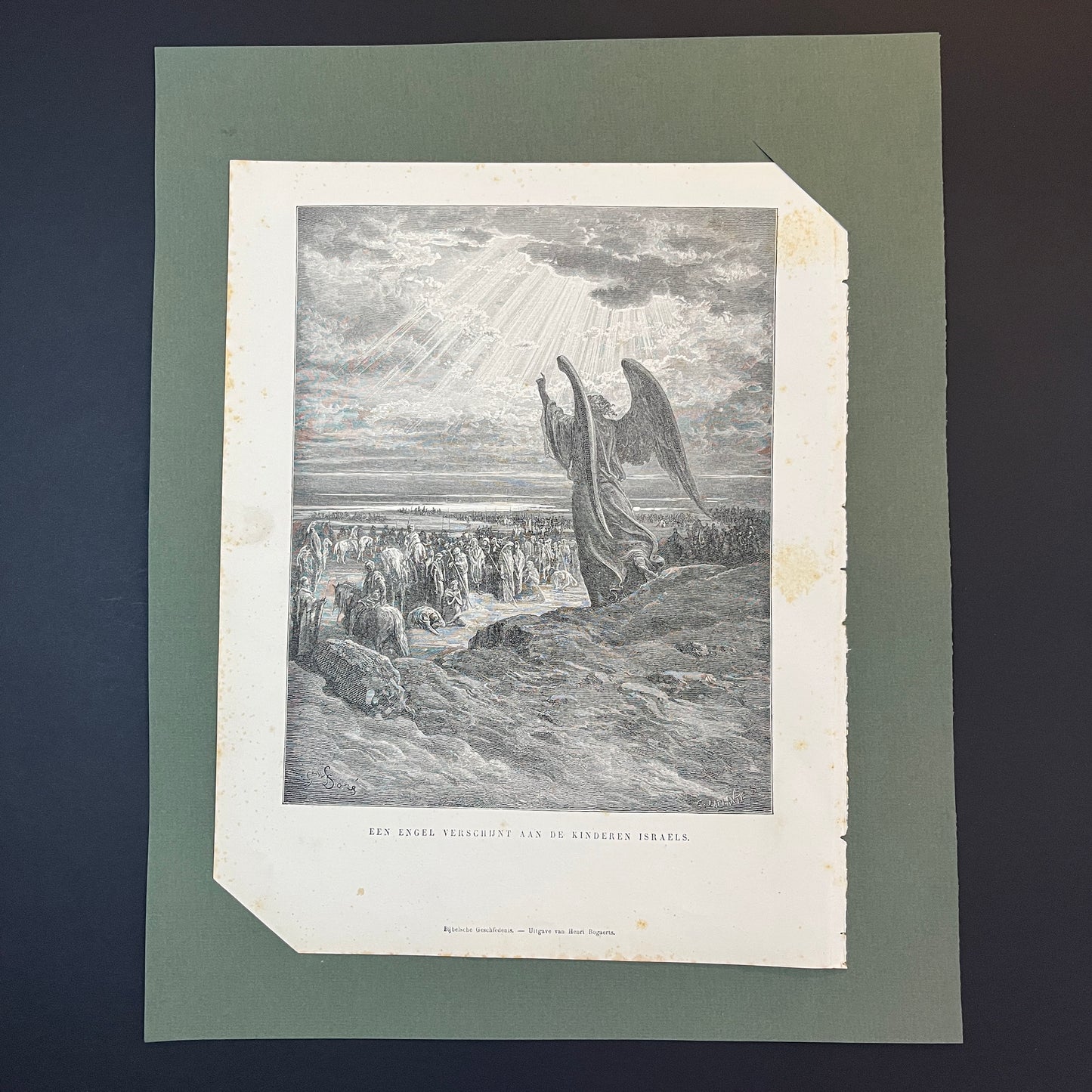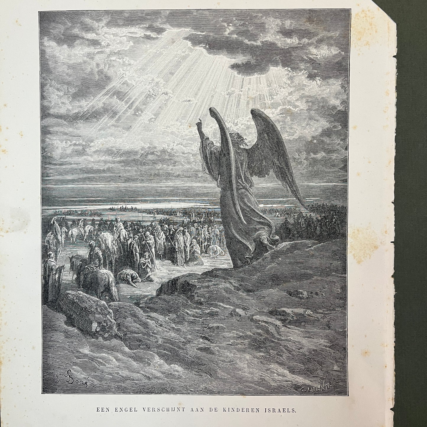 Een engel verschijnt aan de kinderen Israels. Originele houtgravure van Gustave Doré uit 1875.