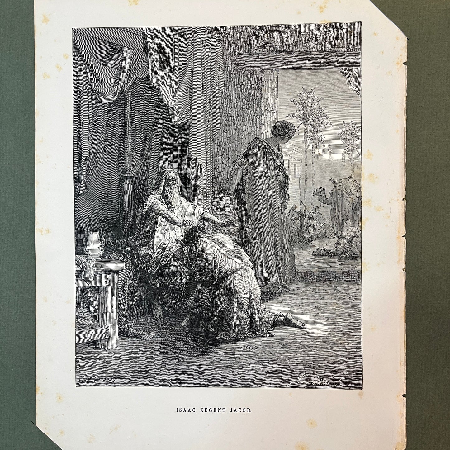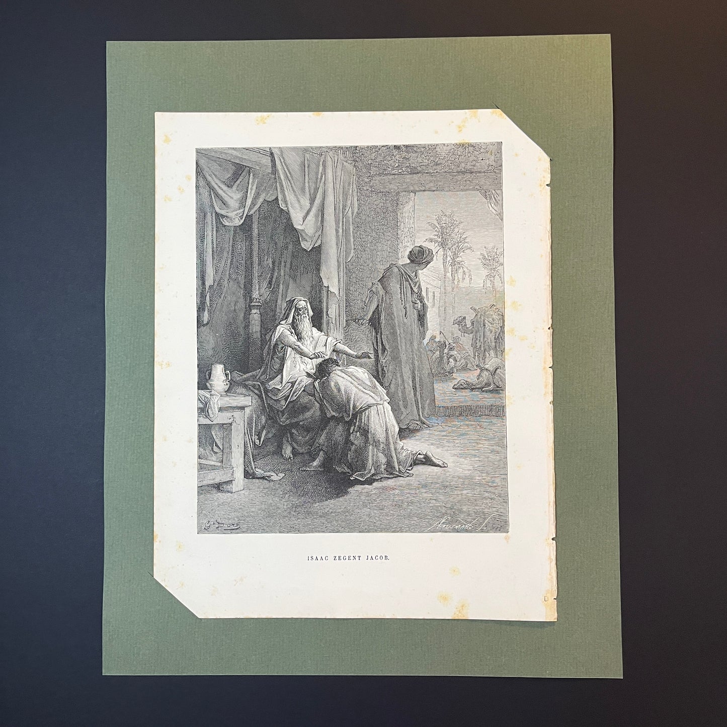 Isaac zegent Jacob. Originele houtgravure van Gustave Doré uit 1875.
