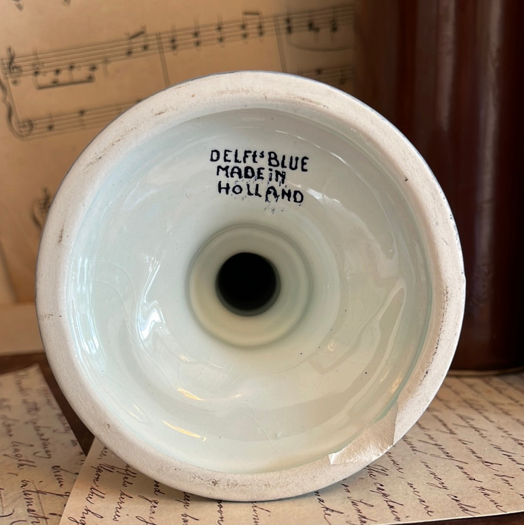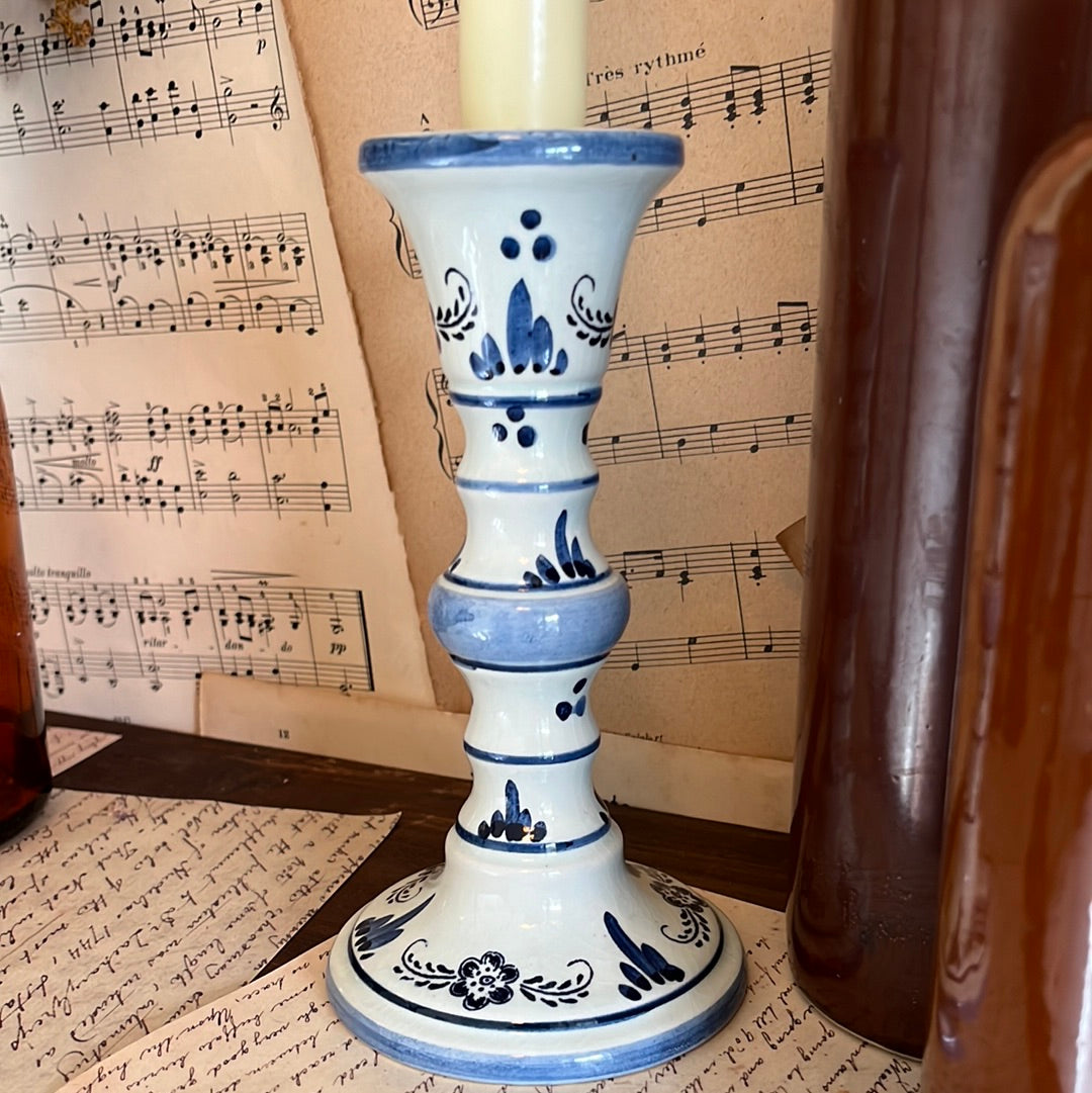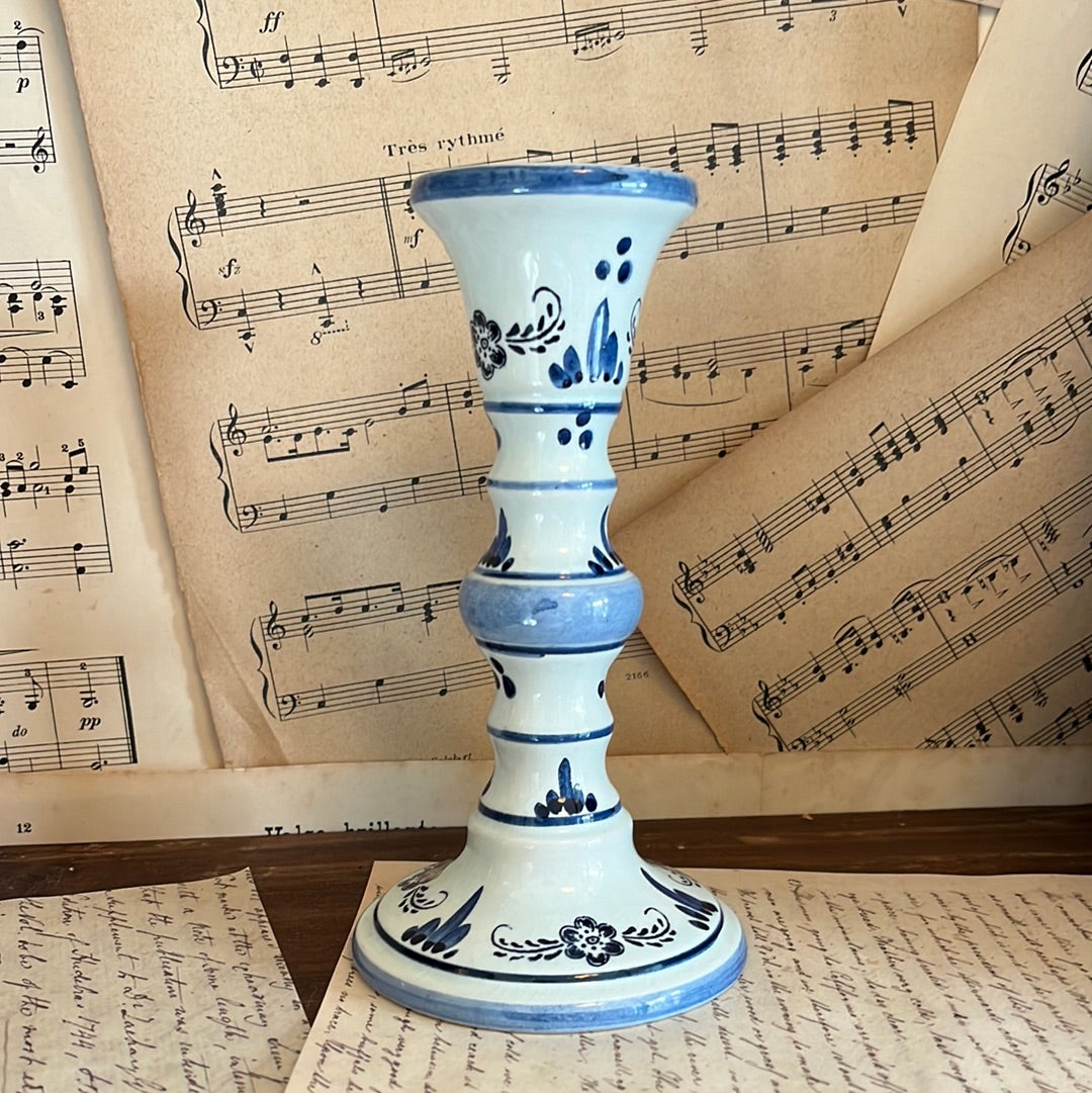 Bijzondere vondst. Een handgeschilderde Delfts Blauwe kandelaar. Hoogte: 16,5cm