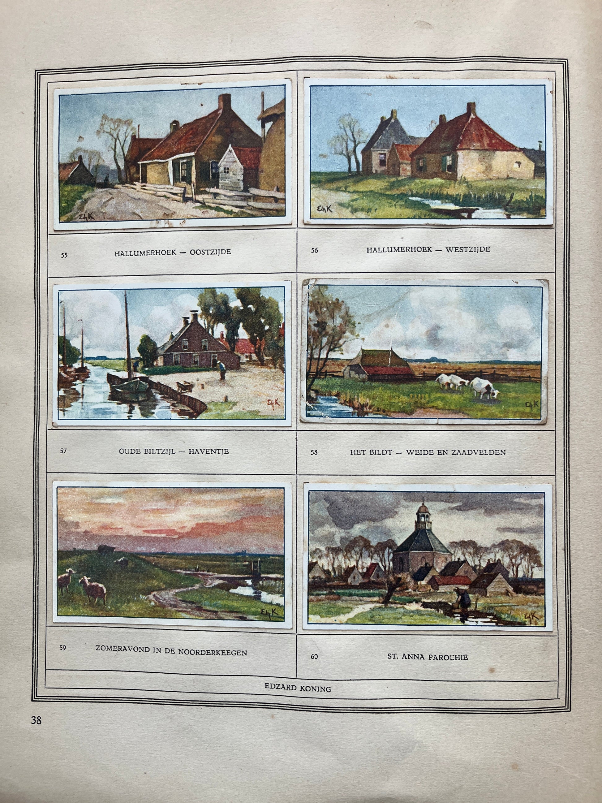Deze plaatjes komen uit het zeldzame album 'Friesland' van Verkade uit 1918 en zijn per stuk te koop.