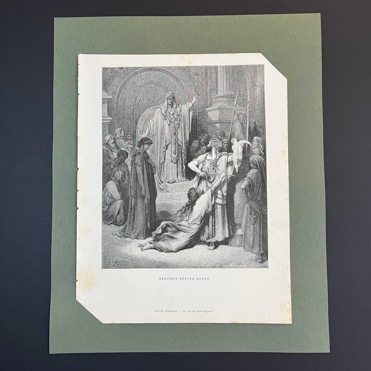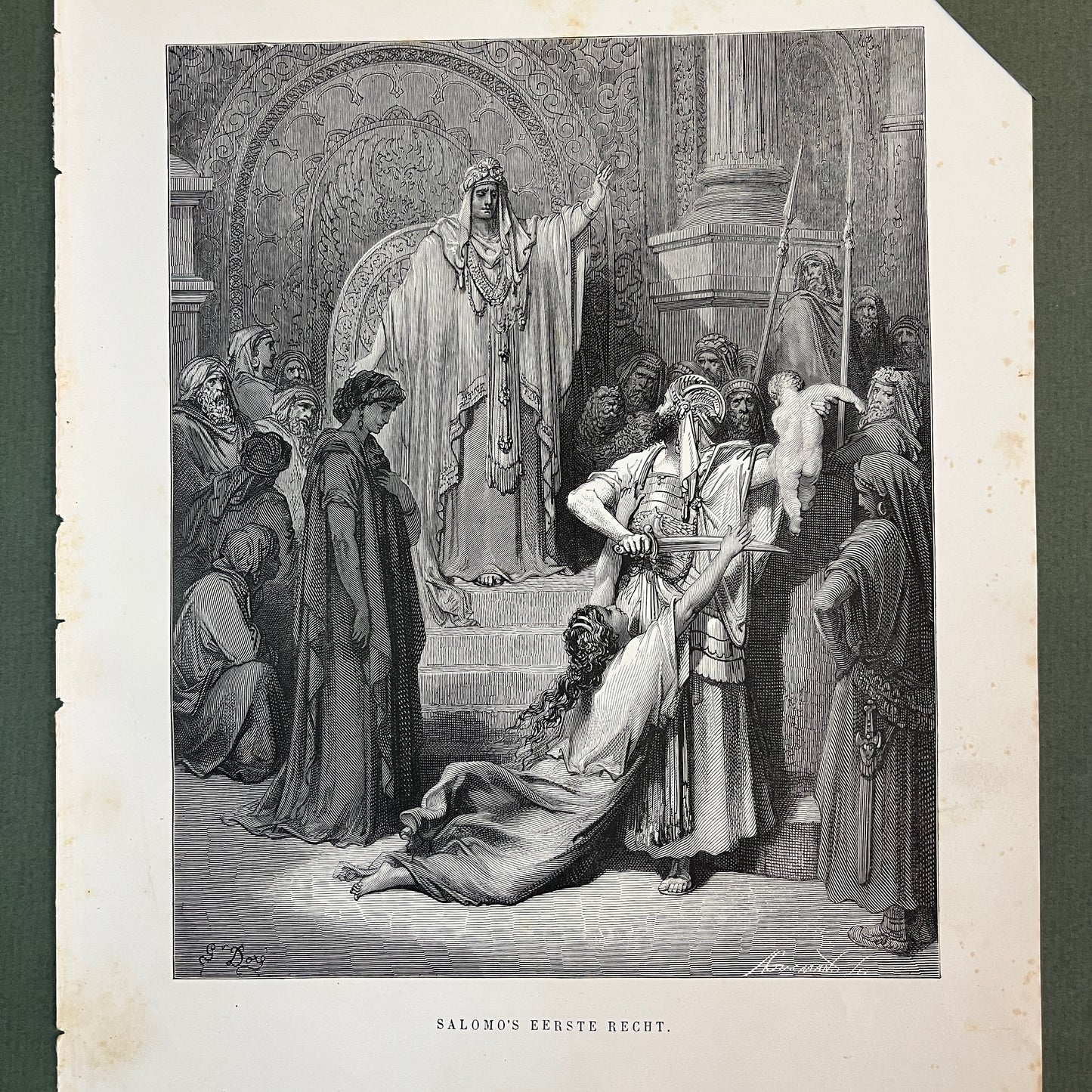 Salomo's eerste recht. Originele houtgravure van Gustave Doré uit 1875.